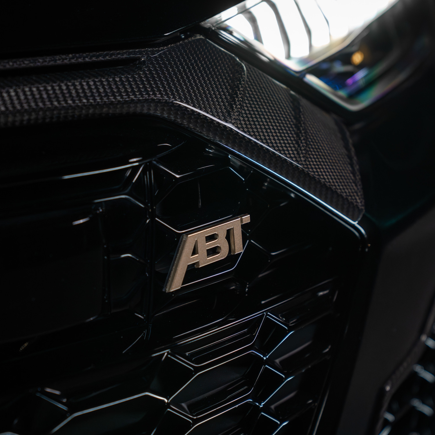 A very special highlight are the ABT HIGH PERFORMANCE IR22 forged wheels in satin gold, fitted with GOODYEAR Eagle F1 SuperSport tyres in 295/30ZR22, which extend the colour scheme right down to the road surface and thus effectively complete the neodymium lighting display.