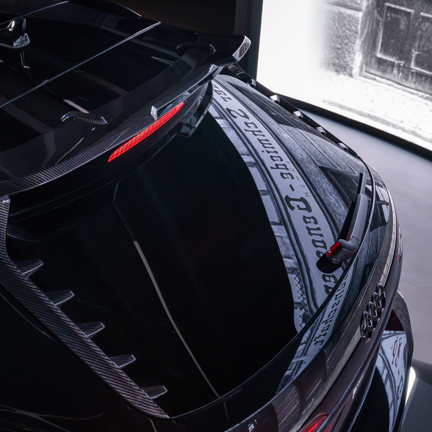 Aerodynamic parts such as ABT front lip and ABT front blades, front apron inserts with optimised airflow, front grille attachment and bonnet insert in glossy visible carbon fibre, ABT wheel arch vents with exclusive ‘RS6-LE 800’ emblem badge, mirror cap attachments, side skirts with decorative inserts, rear apron insert, rear apron attachments, decorative strut and ABT rear wing with aeroblades, which give the RS6-LE 800 its classic silhouette, leave a lasting impression.